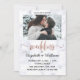 Invite everyone to your wonderful wedding with this simple and elegant card. Select one of the most beautiful photos of you together. The word "wedding" is in a handwritten/calligraphic style filled with rose gold glitter effects.