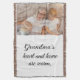 One photograph and "Grandma's heart and home are warm" is the sentiment written in minimalist elegant script on this throw blanket. It can be customised with the name or title of any family member. Say “I love you” in a unique way with a cosy throw blanket. It will fit any decor, so you can enjoy it in your home or give it as a personalised keepsake gift to family.