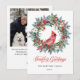 ONE PHOTO Pine Holly Christmas Wreath Red Cardinal Holiday Card