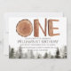 Unique rustic -one- , pine trees 1st birthday invitation.