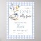 This charming 1st birthday welcome sign features a cute goose and a blue gingham background. Designed by Thisisnotme©