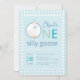 One Silly Goose Blue Party Hat Boy First Birthday Invitation