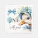 the story of a joyful milestone— very first birthday, a celebration wrapped in love, warmth, and a touch of whimsy. The design centres around a charming goose, lovingly illustrated as if plucked from the pages of a beloved children’s book. He’s not just any goose—He’s “one silly goose,” dressed for a party in a striped hat and floral crown, proudly clutching a Blue balloon. His expression is wide-eyed, innocent, and full of personality—just like a one-year-old discovering the world.