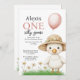 This whimsical One Silly Goose Girl's First Birthday Invitation features an adorable baby goose with a balloon, daisies and modern typography for the perfect girl's first birthday party invitation.