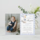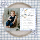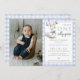 This charming first birthday party photo invitation features a cute little goose holding balloons and a blue gingham background. Designed by Thisisnotme©