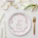 Designed with a soft, vintage watercolor style, this adorable paper plate features a whimsical watercolor goose in a party hat, delicate daisies and greenery accents, and elegant blush pink bows wrapped in flowing ribbon. The gentle pastel palette and whimsical layout offer a perfect touch of coquette girly elegance for your celebration.