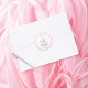 One silly goose and pink gingham girl's 1st birthday floral round sticker. This adorable first birthday design showcases a whimsical goose adorned with a pink birthday hat and a bow, all set within a charming white round frame. The goose is perched atop a lovely arrangement of flowers, with a pink balloon featuring the number 1 floating from its tail. The invitation playfully states "One silly goose" and is bordered with a delightful pink and white gingham pattern.