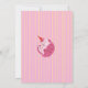 A charming pastel birthday design featuring a sleepy pink cat in a tiny party hat, framed inside a soft cream label with mint green bow details. The pink-and-yellow striped background adds a cheerful retro touch.
