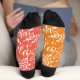 But what truly sets these socks apart is the intricate design adorning their surface. In a charming display of creativity, we've adorned these items with a names written in white font styles. The names form a captivating pattern, wrapping around the socks in a delightful dance of letters that adds a personal touch to your ensemble.