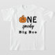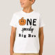 Orange One Spooky Dude Big Bro Halloween Matching Family Tshirt for a 1st Birthday Party - Celebrate your little dude's big one in a spooky and fun way this Halloween season with this cute orange and black retro smiley face pumpkin 1st Boo-Day Party theme. Featuring black, orange, and white classic Halloween colours. A smiley face pumpkin with lightning eyes adds to the fun, retro spooky season aesthetic. The whole family can wear matching tees to celebrate the little dude's first milestone birthday!