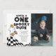 Get ready to celebrate your little one's first birthday with our "One Spooky Dude" photo invitation! Featuring a charming hand-drawn ghost on a skateboard, this unique design captures the fun and excitement of a birthday bash while adding a playful spooky twist. The black and white chequered background enhances the festive vibe, making it perfect for a memorable celebration. Invite friends and family to join in the fun with this eye-catching invitation that sets the tone for an unforgettable party!