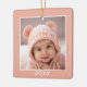 One Square Photo plus Year - minimal coral pink Ceramic Ornament