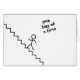 Hand drawn black stick man running up a flight of stairs with "one step at a time" slogan greeting card
