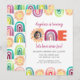 ONE Sunshine Rainbow 1st Birthday Watercolor Photo Invitation