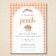 Celebrate your little one’s first birthday with this charming "One Sweet Peach" party invitation! Featuring soft watercolor peaches, delicate floral accents, and a peach-colored gingham background, this design is the perfect blend of sweet and playful. Personalize with your child’s name, party date, time, and location to create a keepsake-worthy invitation your guests will love. Ideal for a peach-themed summer birthday or garden celebration.