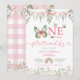 Green & Pink Floral One year fluttered by Butterfly First Birthday Pink Bow, Twin Pink & Green Butterfly First Birthday Invitation