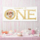 PLEASE NOTE - this is a printed image of gold glitter. This design by Pip Pip Hooray features a gold glitter one typography frame. The word one features a photograph template inside the letter O where you can add your own baby girl's photo. This will create a truly personalised and special banner for her once in a lifetime 1st birthday party.