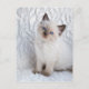 One young seal colourpoint ragdoll kitten sitting on fur in chair