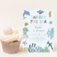 Cute boy's 1st birthday party invitation card featuring illustration of sea creatures and coral reefs. The text says "oneder the sea."