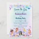 Oneder the sea mermaid cute kids blue 1st birthday invitation