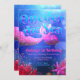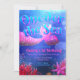 This invitation uses blue and pink as main colour pallet. Depth in the design is given attention by making the fishes look very far from the main focal view point. Lighting effects are used especially in the mermaid tail, to make it the star of the design