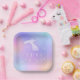 This whimsical mermaid birthday plate checks all the boxes for a perfect party starter. The dreamy colourful gradient and sparkle mermaid tail is the perfect combination of festive fun. The elegant font and playful mermaid tail makes this a fun and stylish choice for a 1st birthday!