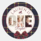 OneDerful 1st Birtdhay Burgundy Classic Plaid Round Sticker