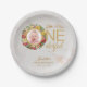 Onederful First Birthday Photo Rose Wreath Marble Paper Plate