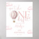 Onederful Pink Balloon Girl 1st Birthday Welcome Poster