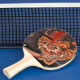 This ping pong paddle is decorated with a reproduction of two plates of a Japanese woodblock print triptych, Oeyama Shutendoji, created in 1858 by ukiyo-e master Utagawa Yoshitsuya. On one side of the paddle, we see the giant head of the oni king Shutendōji of Oeyama, while the other side features his enemy, the famous samurai Minamoto no Yorimitsu.