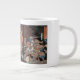 This oversize mug features a reproduction of a Japanese woodblock print triptych, Oeyama Shutendoji. Created in 1858 by ukiyo-e master Utagawa Yoshitsuya (aka Ichieisai Yoshitsuya), this scene features the giant head of the oni king Shutendōji of Oeyama fighting with famous samurai Minamoto no Yorimitsu and his allies.