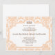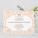 Online Wedding Invitations Peach Damask. These Peach damask wedding invitations with an arched frame and template text for you to customise. You may change the font of the text by clicking "customise it" and using the custom tools to the right of the invitation image. If you need help feel free to click on "Contact" and email a request.