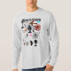 This is a review for a licensed-by-Disney long-sleeved deep-red tee shirt with design showing Mickey Mouse, Minnie Mouse, Donald Duck, Daisy Duck, Goofy, and Pluto. I customized the shirt by adding text with the names of each character.
