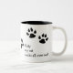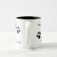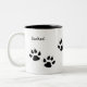 This mug features black cat paw prints with the words, "Only my cat walks all over me!" Take your stand!
