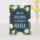 Only the best moms get promoted to Abuela! Celebrate Mother's Day, Grandparents Day or a new grandma to be with this sweet greeting card bearing the sentiment in white lettering on a navy blue background accented with white and ivory watercolor flowers and lush green botanical foliage. Add an optional photo and pre-printed message to the inside to create a unique personalised greeting for Abuela.