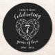 7th wedding anniversary celebrating 7 years of love party coasters. Simple outline heart stone line art graphics white and onyx black colour 7th Wedding Anniversary coasters. Customise with your own seventh wedding party details. 7th Anniversary is traditionally associated with onyx and the heart symbolises love. Graphics and design by Sarah Trett for www.mylittleedenweddings.com on zazzle.
