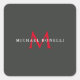 Onyx Black Red Monogram Modern Minimalist Square Sticker