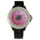 Art Deco 12-point compass rose with the look of black onyx against a rose quartz pink glass-textured background - digital art