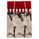 Ooh la la! Medium red glossy gift bag with a beautiful vintage image, on the front and back, of French Cancan dancers under a red and pink awning. See the entire Cancan Gift Bag collection in the PARTY FAVORS section.