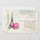 A paris night themed birthday party invitation. Designed on a french style vintage background pattern. An illustration of the eiffel tower with pink lips saying xoxo. perfect for a parisian themed birthday party at a french gourmet restaurant. Classy and elegant. Personalise with your details.