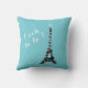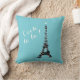 The Eiffel Tower, covered in beautiful, sparkling twinkle lights, and the playful and fun saying, Oooh la la!, decorates this aqua, turquoise throw cushion, making it perfect for the girly bedroom with Paris inspired decor.