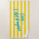 Cute yellow and white cabana stripe beach towel, with the words Oops...I did it again. Fun towel for your day club party or beach vacation.