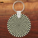 A two toned circular Op Art style design which is made up of circles of rays, each offset to create an alternating pattern.