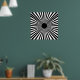 Make a bold statement with this striking Op Art poster featuring a radial sunburst pattern of alternating black and white rays converging on a central black circle. The dynamic lines create an optical illusion of depth and motion, drawing the eye to the focal point while adding modern sophistication to any space. Perfect for minimalist interiors, creative studios, or gallery walls, this piece combines clean geometry with high-contrast drama.