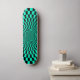 A two toned circular Op Art style design which is made up of circles of rays, each offset to create an alternating pattern.