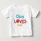 Opa Loves Me T-shirts, cards, stickers, bodysuits bags, and more with colourful red, yellow, and blue text and heart design. These Opa Loves me apparel and gift items will make opa smile!