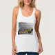 I had purchased the flowy tank for another graphic so I knew it would fit. Nice light fabric, perfect for summer, doesn't cling. The white can be a little shear, you can definitely see your bra through it so if that bothers you, go for a darker color. I have worn this out during the day, and at the gym. The colors are washed out. The blue is more of a pale light blue as compared with the graphic displayed on the website. I would have liked the colors a little more saturated but still nice.
