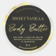 Black and gold body butter labels with a marble, opal glitter and gold foil border.