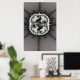 Unique fractal artwork featuring a white starburst shape with greenish and pinkish opalescent sheen on a gradient grey background and outlined in black.