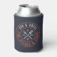 Treat a grill-loving grandpa to this this awesome custom can cooler for Father's Day or Grandparents' Day. A fun addition to his outdoor grilling setup, this cool design for a grillmaster grandfather features a round logo with "Opa's Grill, Steaks and Chops" with illustrations of grilling tools, a flame, and a cow. Finish the design with the year established.